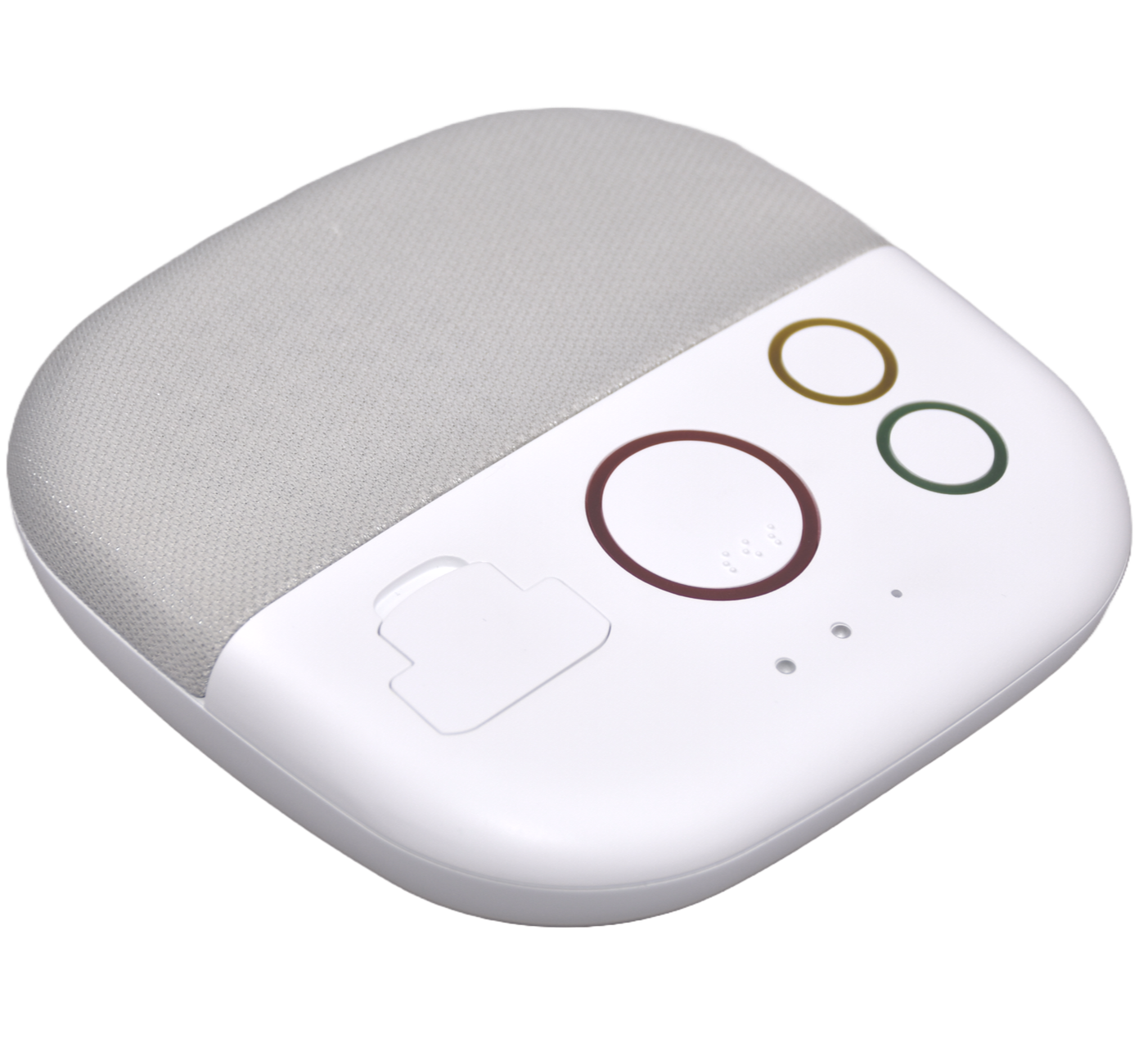 Ein modernes Hausnotrufgerät für den stationären Einsatz oder die Basisstation für ein Kombi-Notrufsystem, das Sie unterwegs und zu Hause nutzen können