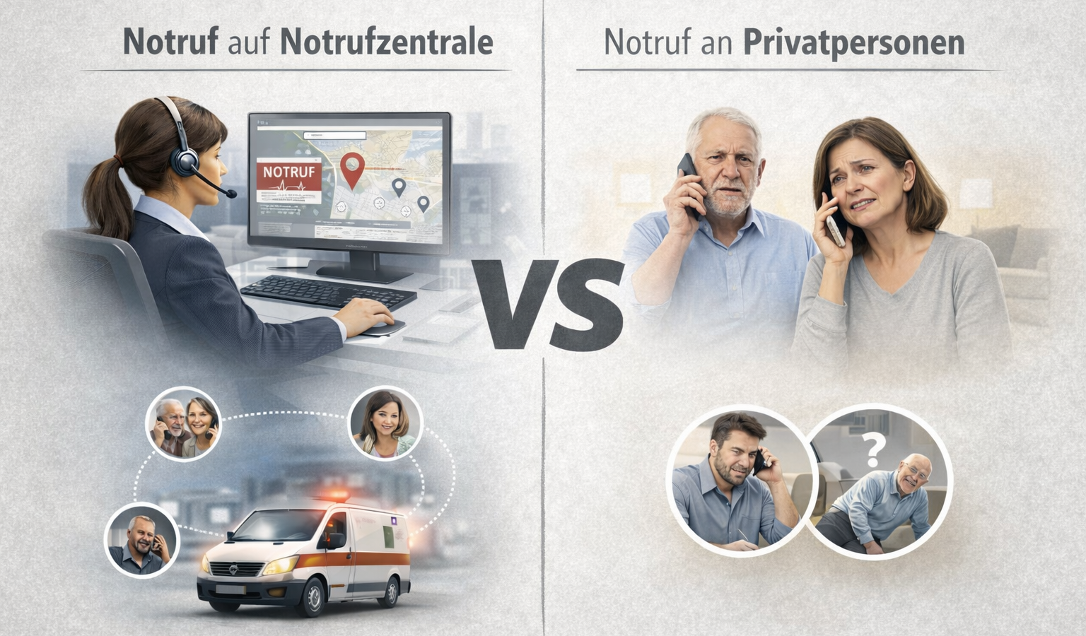 Notrufzentrale oder Privatpersonen: Was ist der Unterschied bei Notrufsystemen?